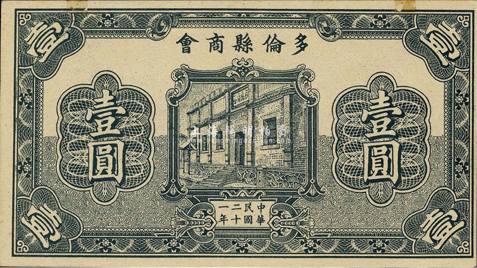 民国二十一年(1932年)多伦县商会壹圆,时属察哈尔省辖地;森本勇先生藏品,少见,未折九五成新