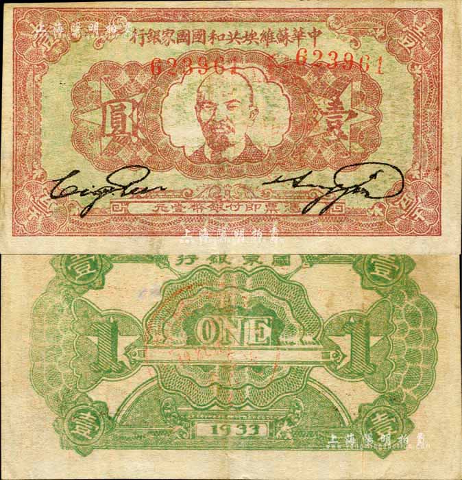 1933年中华苏维埃共和国国家银行列宁像壹圆,森本勇先生藏品,已属较佳品相,八五成新