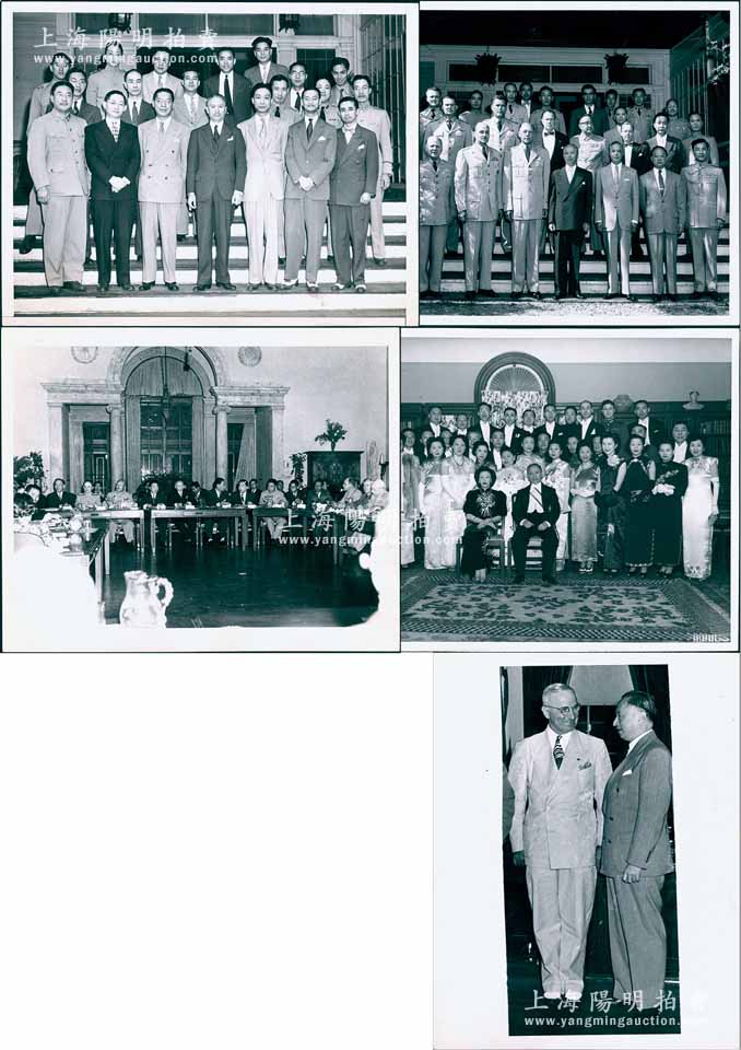 “民国第一外交家”顾维钧先生遗存老照片一组共5张不同,详分:1944年顾维钧与时任驻美大使魏道明等人在美国国务院开会场景、顾维钧与美国总统杜鲁门合影、顾维钧与夫人黄蕙兰等众人合影、顾维钧与美国空军将领等合影、顾维钧与众外交官合影,均尺寸颇大;源于海外回流,保存甚佳,敬请预览和珍视