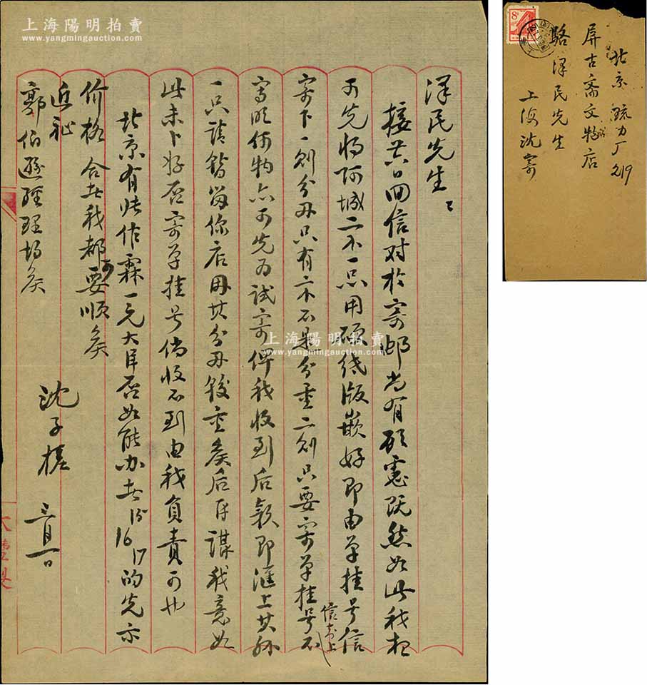1965年著名钱币收藏家沈子槎(浙江湖州籍)致京城钱币名家骆泽民信札一通,内中提及邮寄古钱事宜及托付购买“张作霖一元”银币等情;源于京城前辈名家骆泽民先生之遗存,附带原信封,保存甚佳,敬请预览和珍视