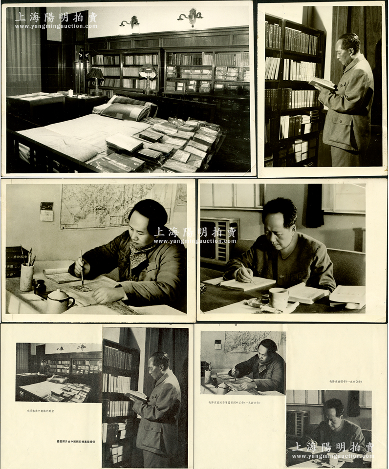 1986年三联书店版《毛泽东的读书生活》一书之各种设计出版墨稿印样1组,其重点包含书中插图所用之“毛主席读书”老照片4张,尺寸115×154mm至168×114mm不等,且此4张原照背面亦有批注文字;《毛泽东的读书生活》是目前最受国家干部喜爱的十本书之二,从中昭示毛泽东所取得的一切成就,是和他投身变革社会的革命实践、和他一生刻苦的读书生活分不开的;保存甚佳,敬请预览