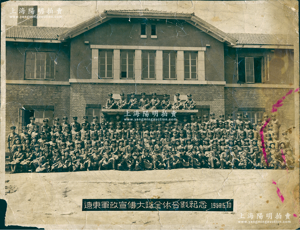 1950年“辽东军政宣传大队全体合影纪念”历史老照片1张,尺寸285×218mm,保存尚佳,敬请预览