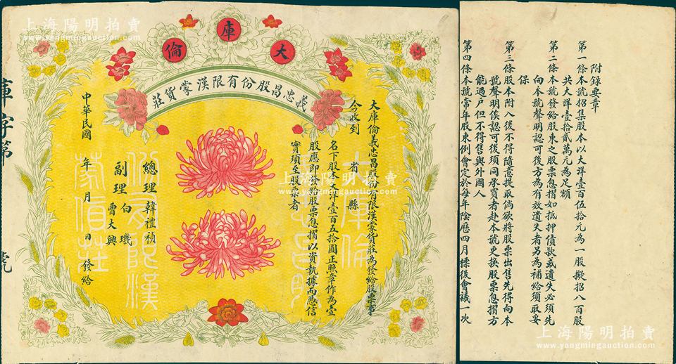 上海阳明2023年春季拍卖会,故纸繁华 · 历史文献与百年证券