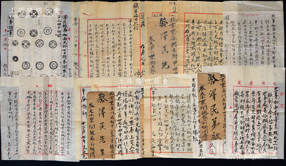 民国时期奉天骆文元(即骆泽民长兄)致骆泽民信札共25通,其内容均为买卖古钱币等事宜,内中涉及大量稀有古钱,且亦谈及小川浩、崔家平、刘荣庭、周铁衡、王希哲等诸多北方藏家之状况;昔年骆文元在东北各处收购钱币、古董,继而都交由骆泽民在北京的汇泉堂出售(即兄收货、弟卖货模式),此宗信札内含诸多钱币之流传详情、藏家之间的秘辛往事、骆氏家族之钱币经营状况等,内容丰富无比,难以一一细述,相信细阅之下,定能令阁下震惊无比;源于京城前辈名家骆泽民先生之遗存,部分附带原信封,整体保存甚佳,敬请预览和珍视