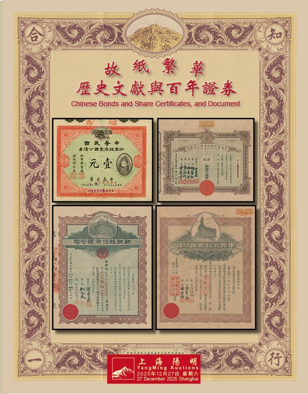 上海阳明拍卖之中国老股票与债券部,面向海内外社会各界及收藏业界广泛征集中国清代、民国、解放区及新中国初期的老股票、债券、保险单、金融史料实物等精品。