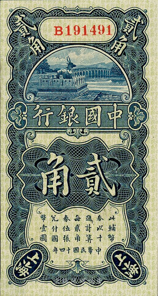 民国十四年(1925年)中国银行上海贰角,单字轨,冯耿光·贝祖贻签名,海外回流,九八成新