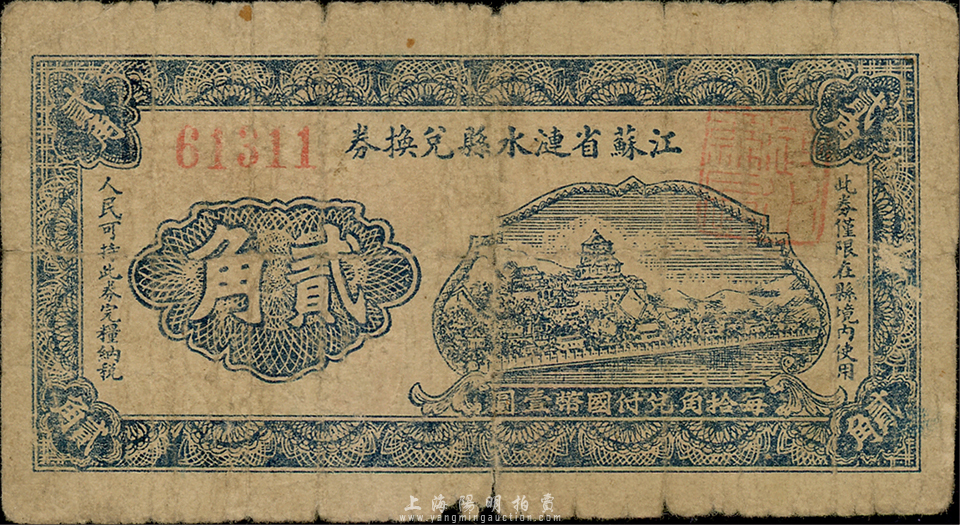 江苏省涟水县兑换券贰角,无年份版,森本勇先生藏品,少见,近七成新