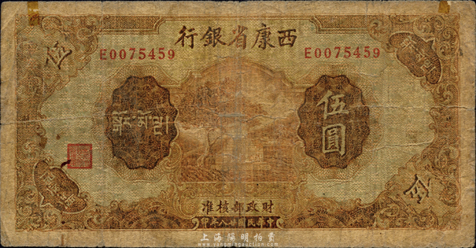民国廿八年(1939年)西康省银行藏币券伍圆,森本勇先生藏品,少见,六至七成新