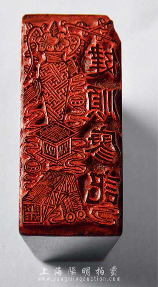 清末或民国时期福建钱庄业“健顺廖记”牛角章1枚,其上图案极富传统吉祥内涵,香港集趣堂藏品,刻工精湛,保存甚佳,敬请预览