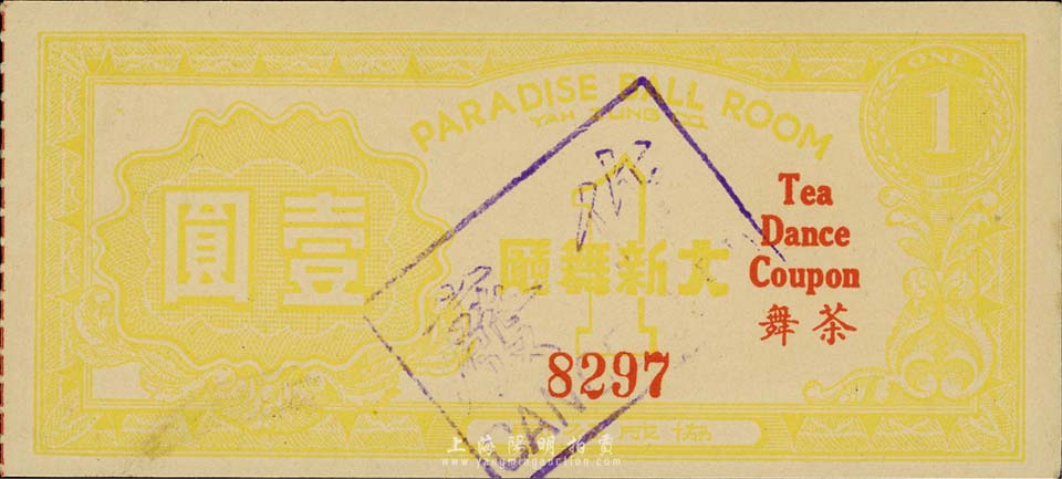 (协成公司)大新舞厅茶舞壹圆,老上海孤岛时期代价券,九成新