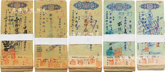 1939-46年(宜宾)中央银行支票共365枚,内含多种版式,且面额各异,整体约八成新,敬请预览