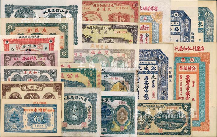 民国时期山东钱庄票及流通券一组共20枚不同,品种各异,内容丰富,六至九八成新,敬请预览