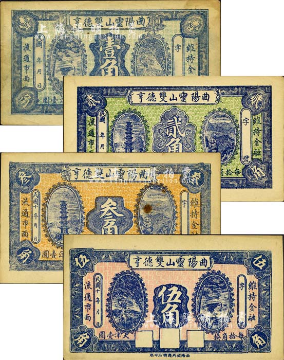 民国年(1921-)曲阳灵山双德亨壹角、贰角、叁角、伍角共4枚全套,森本勇先生藏品,八五至九成新