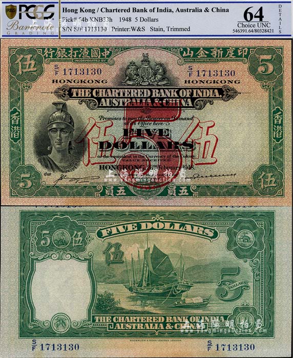 1948年印度新金山中国渣打银行五员,海外藏家出品,九八成新