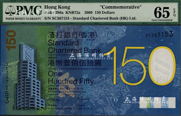 (香港)渣打银行2009年港币壹佰伍拾圆,纪念渣打银行成立150周年,全新
