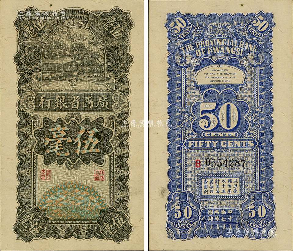 民国十七年(1928年)广西省银行伍毫,品相难得,九至九五成新