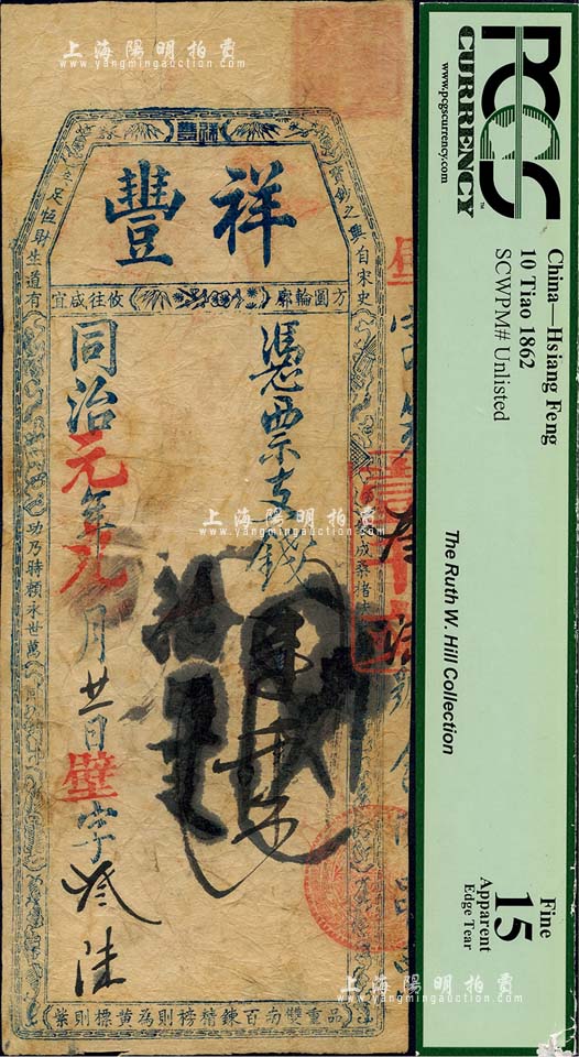 同治元年(1862年)祥丰·凭票支钱壹千文,清代福州府台伏格式钞票;美国藏家出品,背盖收藏章,罕见,七五成新