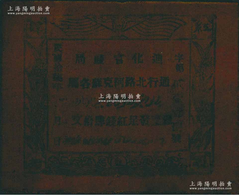 民国拾柒年(1928年)迪化官钱局·凭票发足红钱肆拾文油布币,通行北路阿克苏各属,近八成新