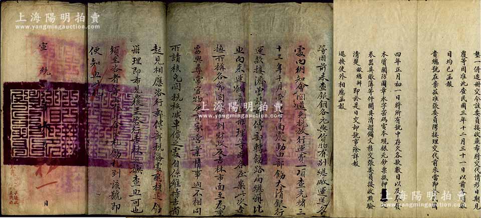 吉林永衡官银钱号档案文献2件,详分:宣统二年(1910年)吉林行省总督锡(良)、巡抚陈(昭常)札饬一份,事准度支部咨开通阜司案,拟定国币则例,谕旨各省现铸大小银铜元一律停铸,但吉林情形与内地不同,若无铜币则官帖无效,恐引起兵变,故特将京津市面铜元及总厂现存五百余万枚运吉林行用等事宜;民国四年(1915年)“卸任驻津吉林官银钱号总办齐耀瑭”致吉林永衡官银钱总号公函一则,事为取消驻津分号等情(该分号曾发行有纸币);此二文献与一般常见公函式文献不同,对吉林货币史而言,极具史料研究价值,保存尚可,敬请预览