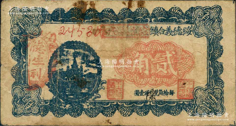 民国二十二年(1933年)绥德义合镇德生利裕记贰角,白尔文先生藏品,少见,七成新