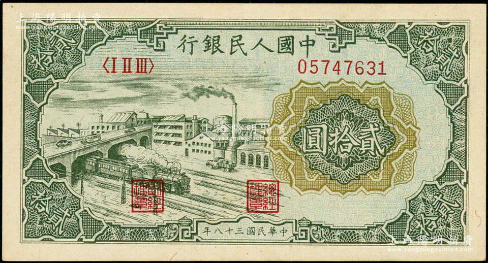 第一版人民币“立交桥”贰拾圆,无自由版,九成新