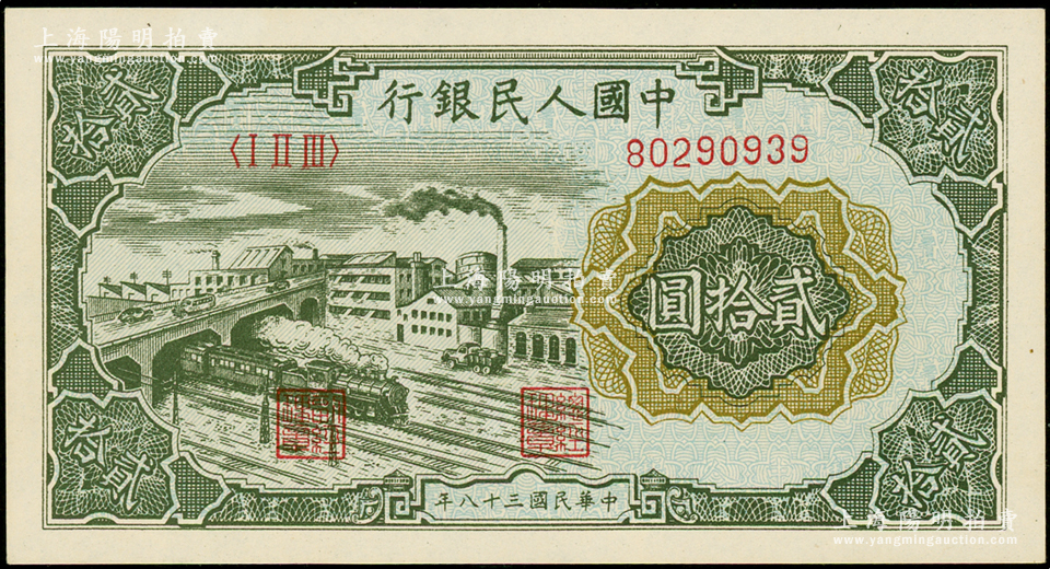第一版人民币“立交桥”贰拾圆,无自由版,全新