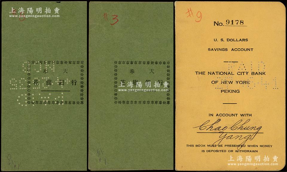 1932年奉天花旗银行活期存摺2册、1938年北京花旗银行存摺1册,合计共有3册,少见,七至八成新
