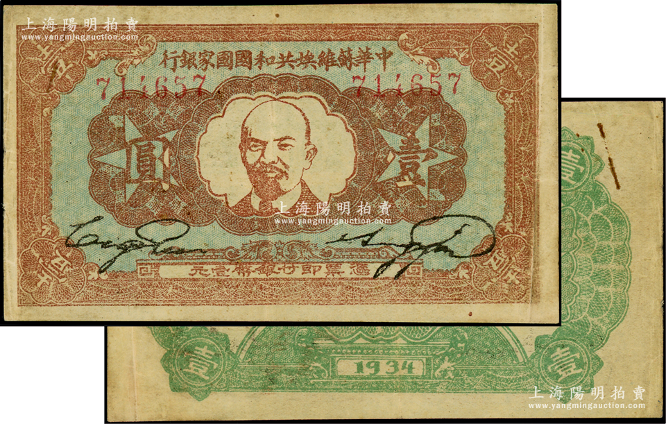 1934年中华苏维埃共和国国家银行列宁像壹圆,八成新