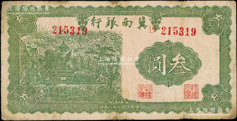 民国二十八年(1939年)冀南银行叁圆,七成新