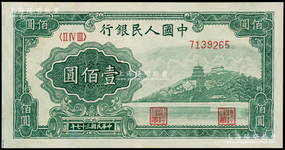 第一版人民币“万寿山”壹佰圆,九成新