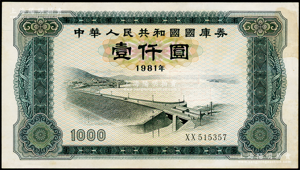 1981年中华人民共和国国库券壹仟圆,内有水印,近九成新