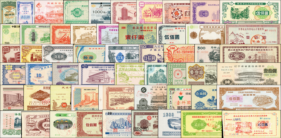 1957至1990年代新中国各省之企业债券等藏品集一册共460余种不同,其形制尺寸基本均属“钞票式”债券,涉及28个不同省份发行(包括新疆),时间跨度贯穿建国初期、大跃进、文革、改革开放等各时期,很多均属印钞厂印制且内有水印,形制美观,因品种太过丰富,难以逐一细述;源于藏家出品,整体保存极佳,七成至全新不等,敬请预览
