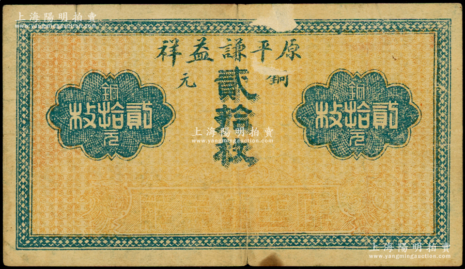 民国(山西崞县)原平谦益祥铜元贰拾枚,海外藏家出品,少见,七五成新