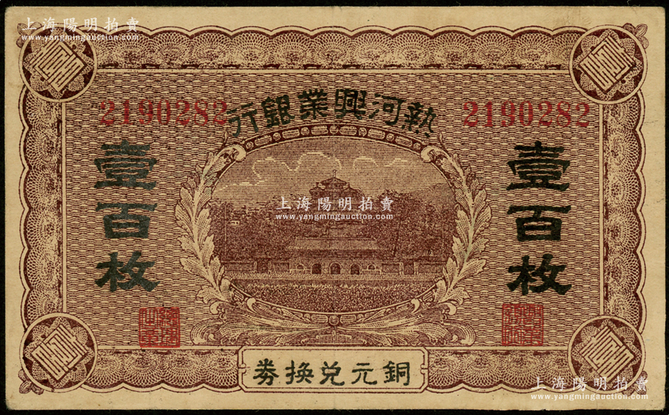 热河兴业银行铜元兑换券壹百枚,海外藏家出品,八至八五成新