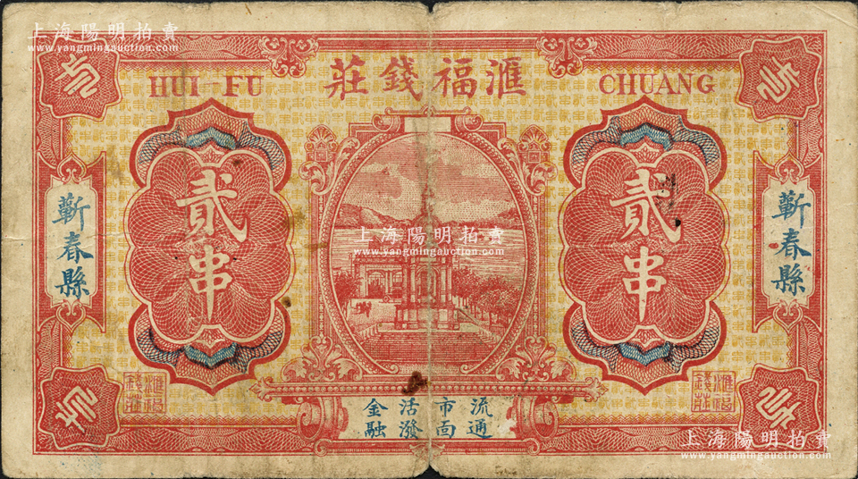 (蕲春县)汇福钱庄贰串,背印港口全景甚为美观;源于日本名家森本勇先生之旧藏,罕见,七五成新