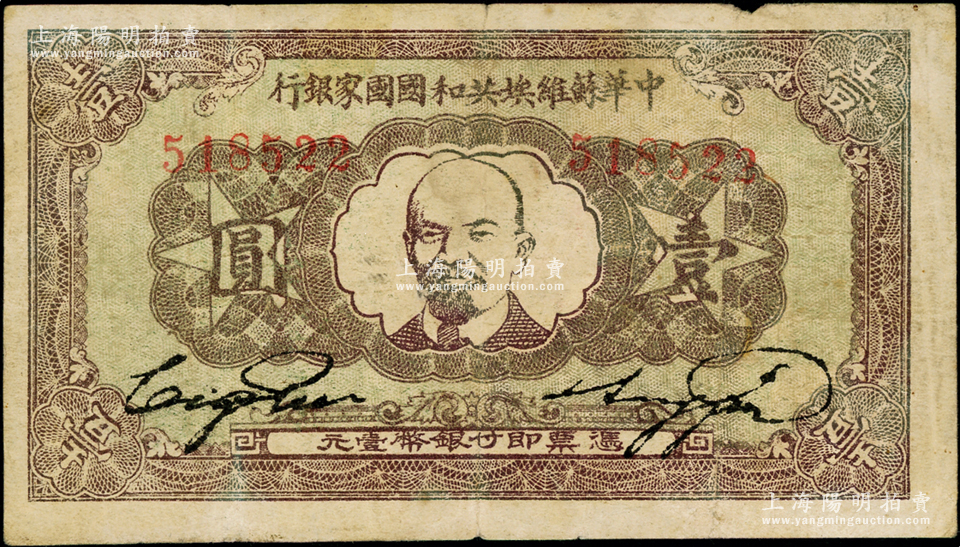 1932年中华苏维埃共和国国家银行列宁像壹圆,属第一版年份,七五成新