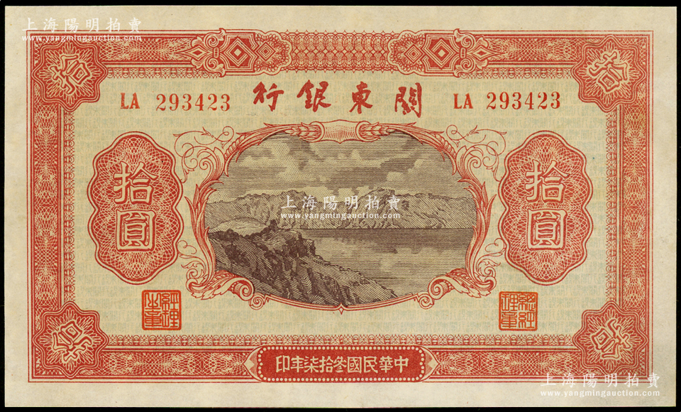 民国叁拾柒年(1948年)关东银行拾圆,旅大解放区发行,资深藏家出品,上佳品相,九至九五成新