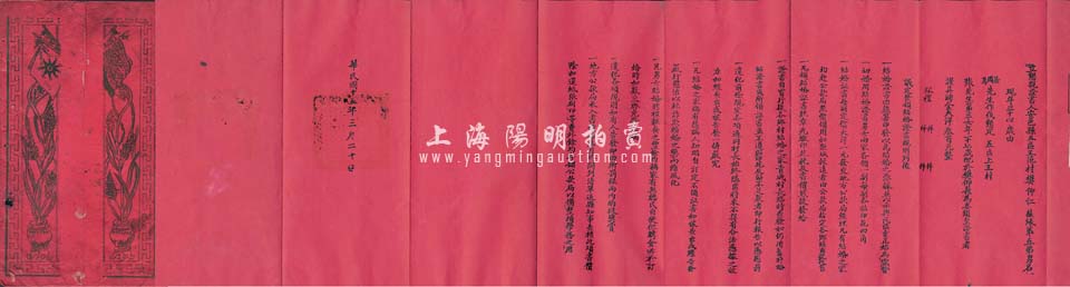 民国十五年(1926年)“初婚证书”一件,内中谨具聘金大洋叁百元,且印有“议定发领结婚证书规则”,形制风格较为特殊,附带原封套,保存尚佳,敬请预览