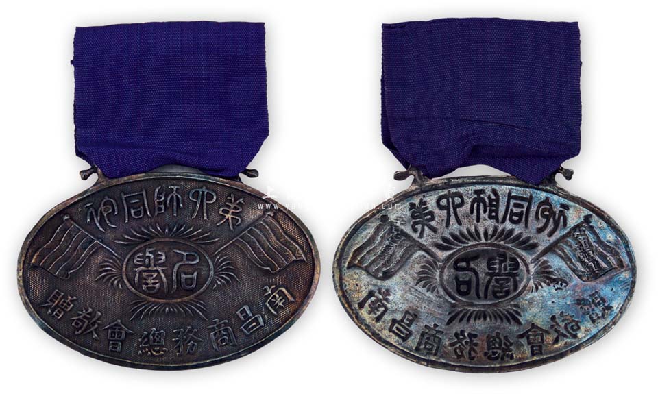 北洋政府时期“南昌商务总会敬赠·第六师同胞”银质名誉奖章1枚,保存甚佳,敬请预览