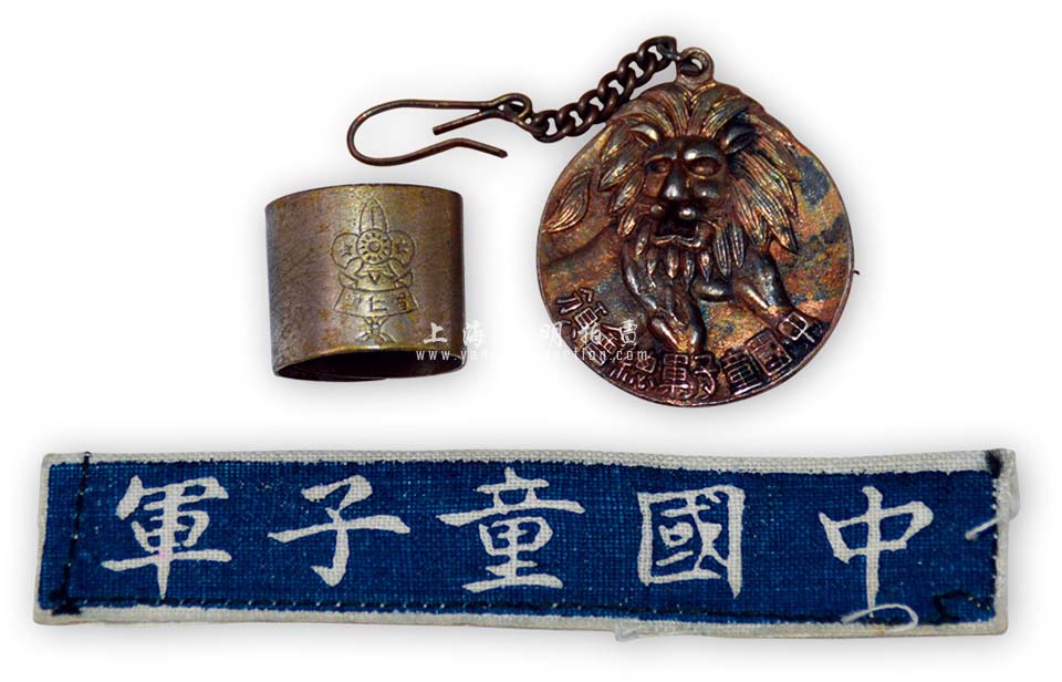 民国时期“中国童子军”历史实物共3件,详分:“中国童子军总会颁”狮头银章、布制佩条、“智仁勇”纪念戒指各1枚,均保存甚佳,敬请预览