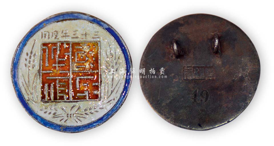 民国三十三年(1944年)国民政府银质证章1枚,由印铸局制,保存甚佳,敬请预览