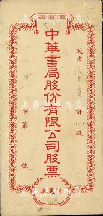 民国时期·中华书局股份有限公司股票封套1个,保存尚佳,敬请预览