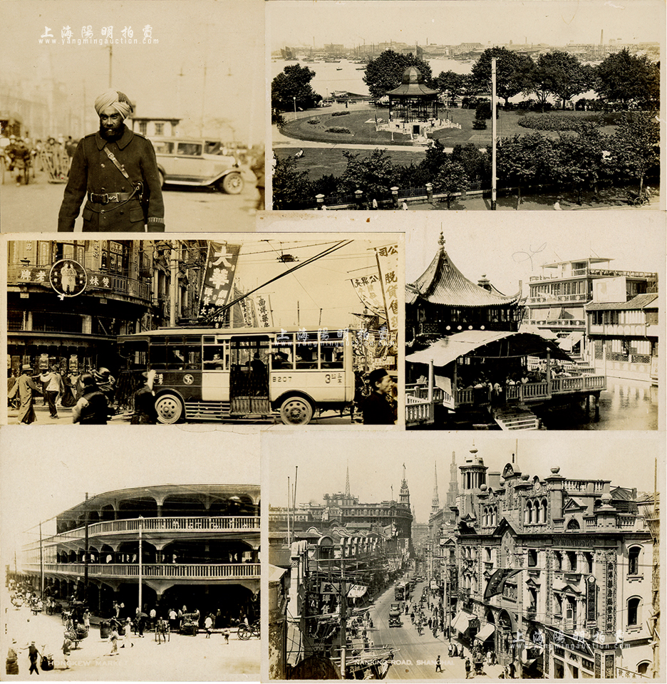 民国时期老上海照片式明信片共6枚,内含南京路、城隍庙九曲桥、虹口三角地菜场、外滩公园、印度巡捕之景象等,乃属历史之真实写照,保存甚佳,敬请预览