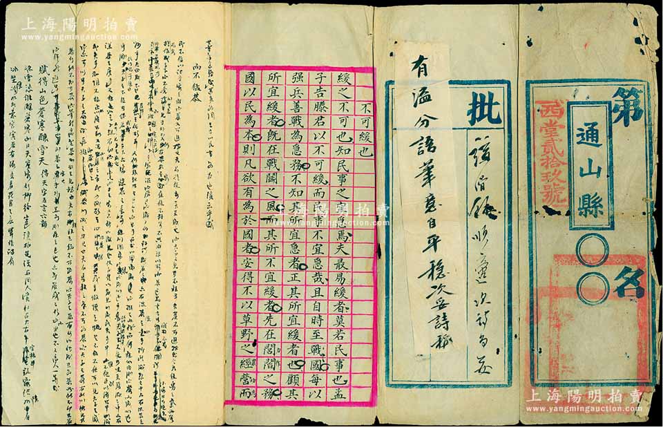 清代湖北通山县“县试”考卷1份,西堂第贰拾玖号,其考文为“不可缓也”,文字俊秀,且内有批文,内容完整且保存较佳,敬请预览