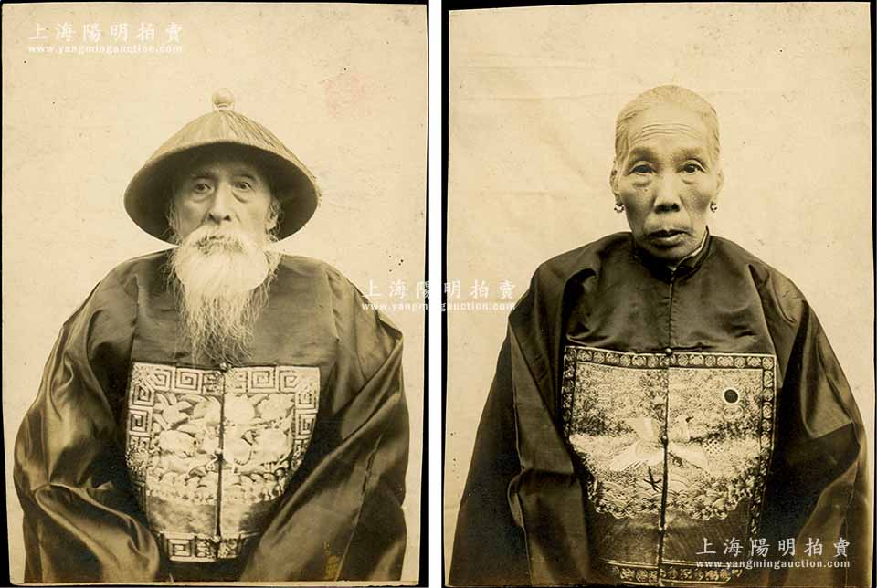 清代(云南省)官员夫妇老照片共2张不同,尺寸108×149mm,就其夫人之官服补子而论,乃属五品诰命夫人;此老照片极富历史意义,亦适用馆藏或圣旨诰命之辅助展览,保存极佳,敬请预览