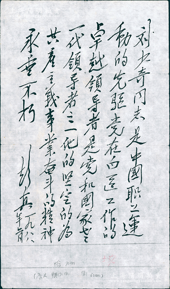 1988年无产阶级革命家彭真题词1幅,时为刘少奇同志纪念刊所题,尺寸200×304mm,保存甚佳,敬请预览