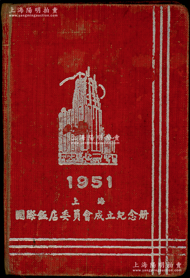 1951年上海《国际饭店委员会成立纪念册》一厚册,内印有毛主席头像、各银行及企业广告等,并手写记录有解放初期各政策等;陈伟国先生藏品,保存较佳,敬请预览