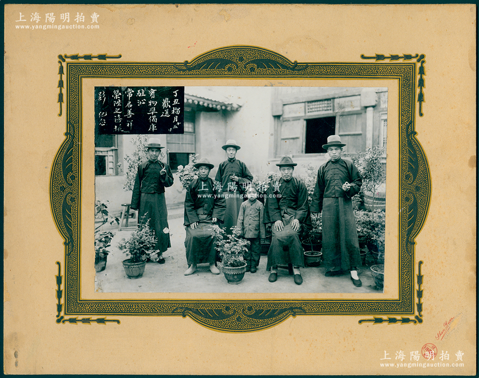 丁丑榴月十五日(1937年)山西“实物准备库驻沁常君善祥荣陞之禧撮影纪念”大型历史老照片1张,原装帧,带框尺寸300×230mm,由山西三元像馆摄制;胡俊良先生藏品,罕见,可适用于展览或典藏,保存甚佳,敬请预览