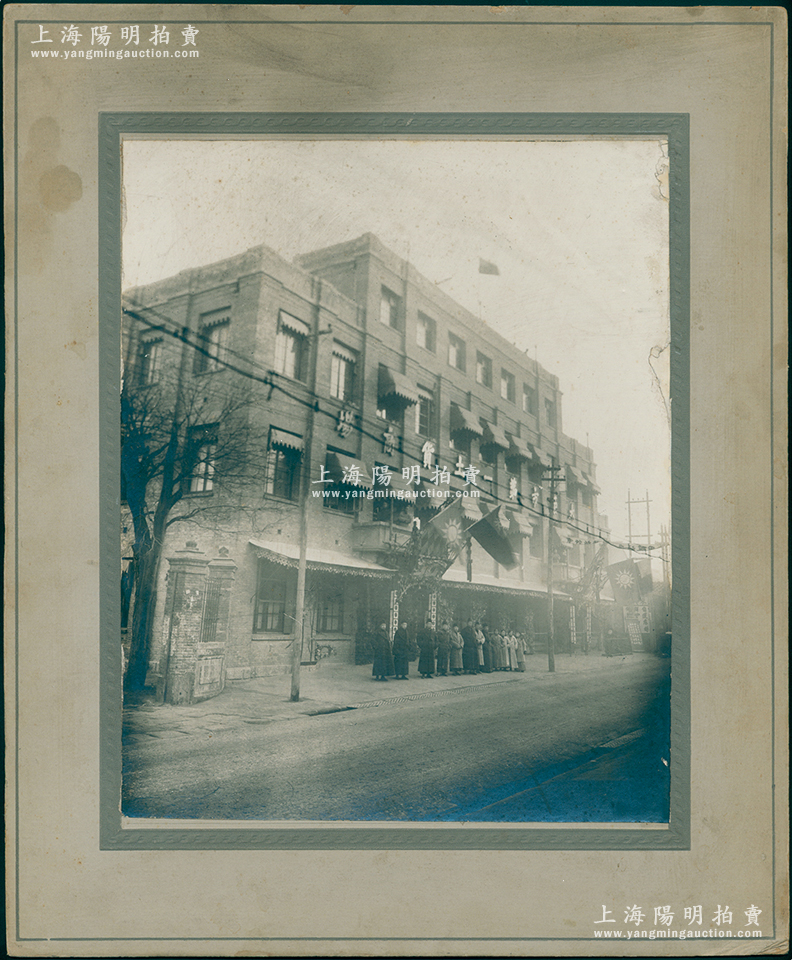 民国时期“太原市第一土货商场同仁合影”特大型历史老照片1张,原装帧,带框尺寸317×387mm,此土货商城乃阎锡山提倡本省土货、抵制洋货倾销山西之历史实证;胡俊良先生藏品,罕见,可适用于展览或典藏,保存较佳,敬请预览