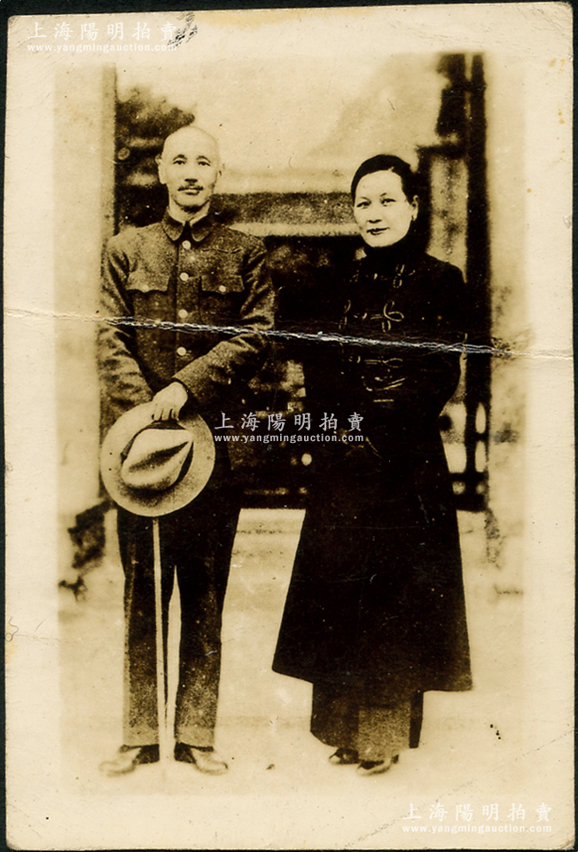 民国时期“蒋介石、宋美龄夫妻合影”原版历史老照片1张,尺寸57×85mm,属抗战时期摄于重庆,在四川资中县档案馆亦珍藏有相同者;罕见且保存较佳,敬请预览